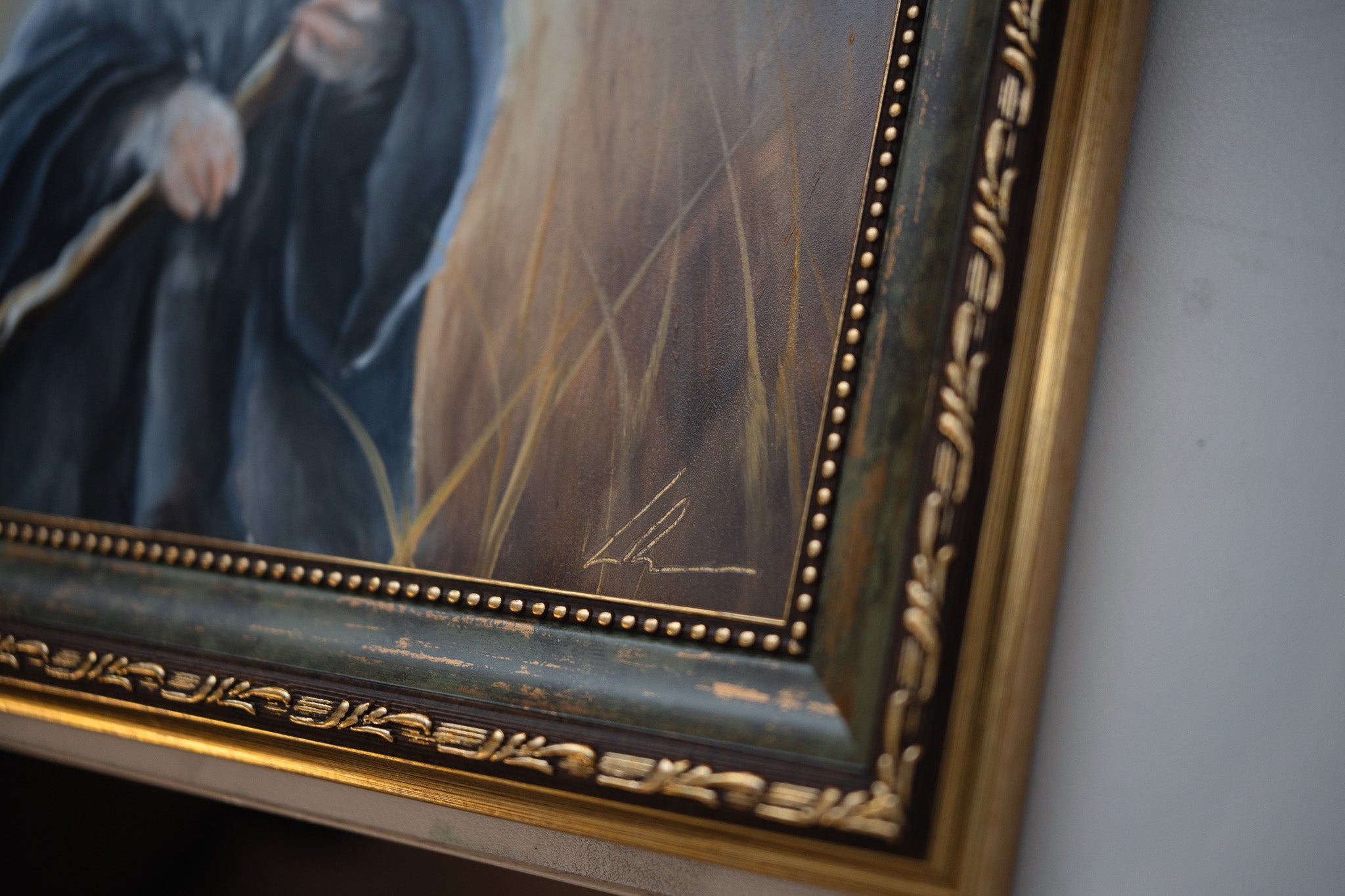 If needed, lightly dust the surface of the painting with a soft, dry microfiber cloth.
